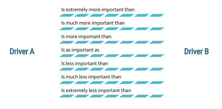 AHP is a structured multi-criteria decision-making method that helps compare alternatives when several, often conflicting, factors matter. AHP first breaks a decision down into a hierarchy with the overall goal at the top, followed by criteria and sub-criteria, and alternatives at the bottom. Decision makers then perform pairwise comparisons, judging the relative importance of one element versus another using a numerical scale, which converts qualitative preferences and expert judgments into quantitative priority weights. AHP checks the internal consistency of these judgments and aggregates the resulting weights through the hierarchy to produce an overall priority score for each alternative, supporting transparent and logically organized decisions in complex settings. Click here for a step by step look at AHP.
