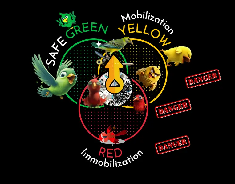 When you use your X-Ray vision to size up your physiology (as GREEN, YELLOW, RED, or a blend), it’s helpful ascertain (1) the state your body is in, (2) how smoothly your body shifts between states, (3) what your physiological home base is, and (4) which parts pop up center stage to help/”help” you when your suit is in that state.